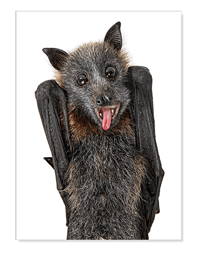 Unlike most bats, Calypso prides himself on his personal hygiene. He spends his days grooming himself and playing board games with his mates – his favourite game is strip poker.